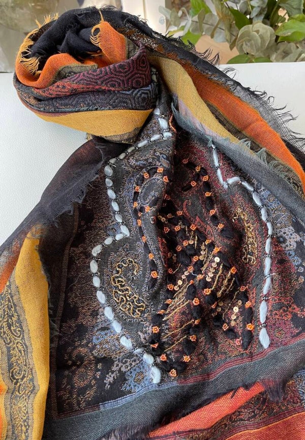 Met extra losse wollen details en accenten van wol en kraaltjes geborduurd