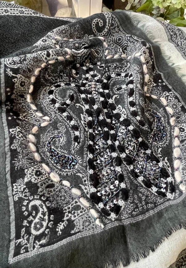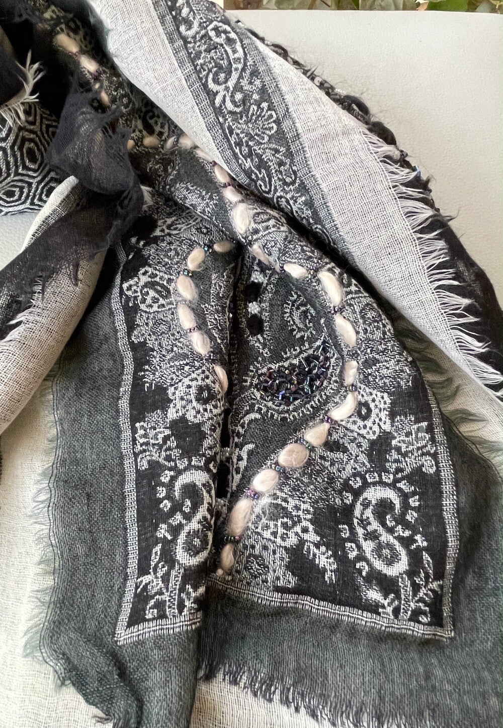 Met extra losse wollen details en accenten van wol en kraaltjes geborduurd