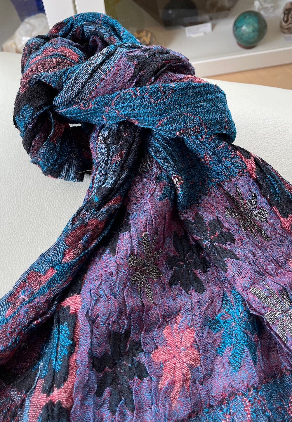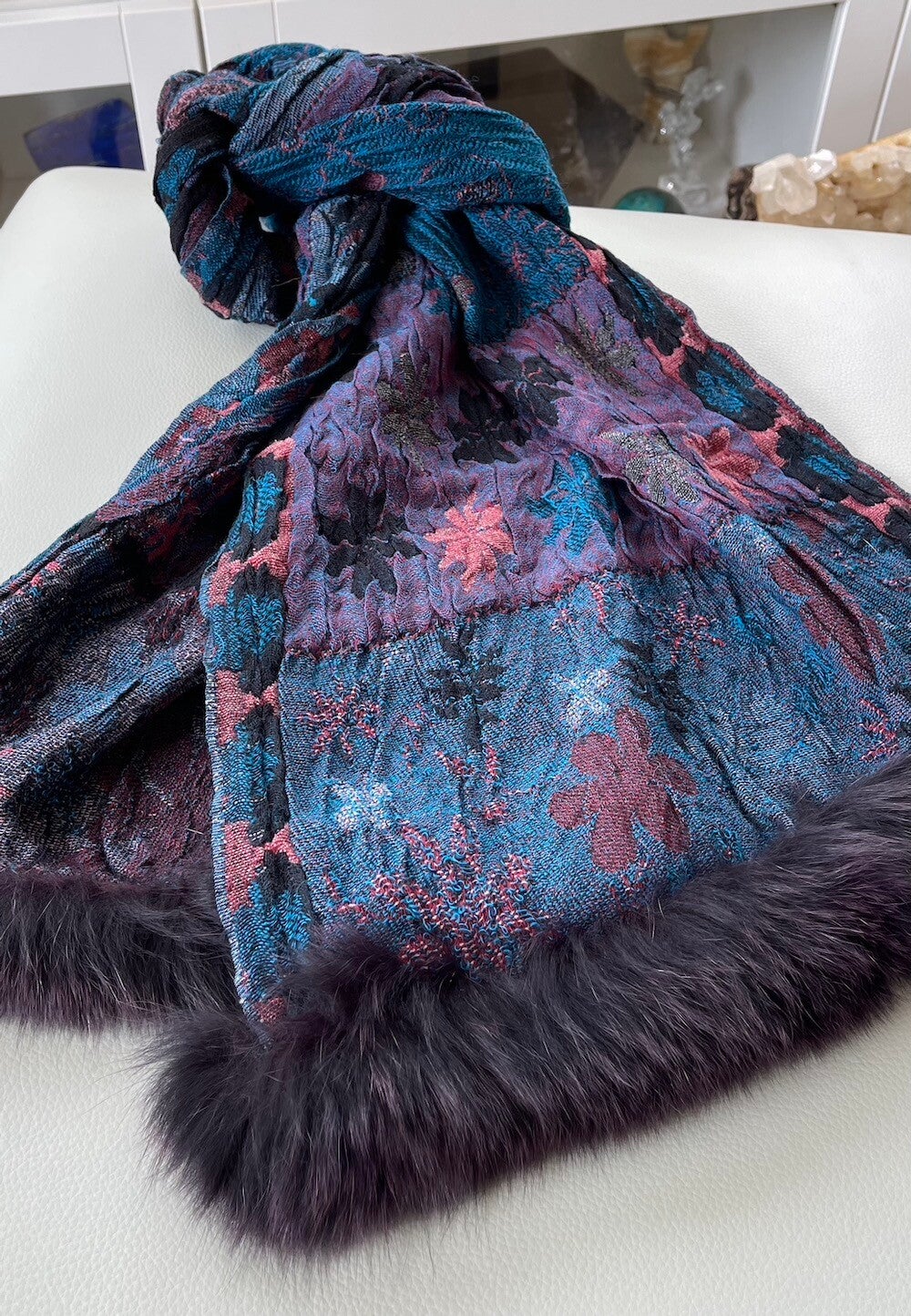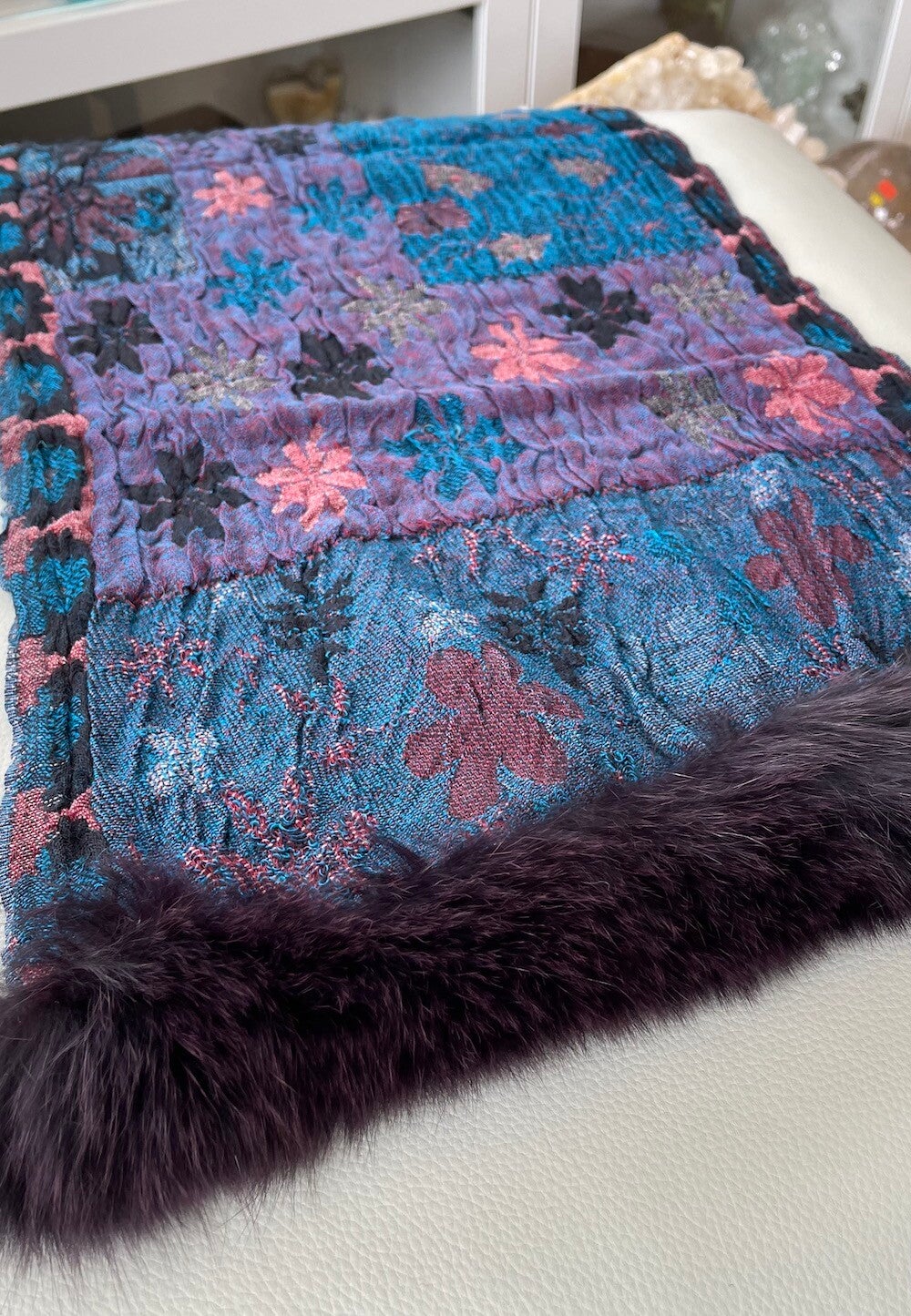 Wollen shawl paars blauw zwart taupe met elastiek en bont