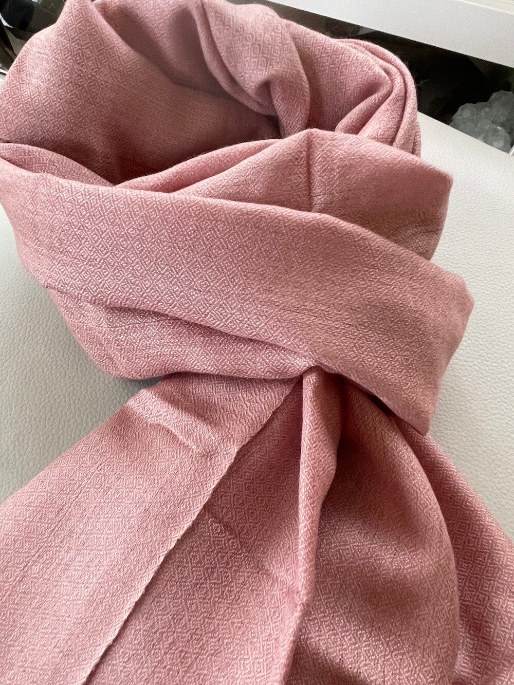 Zijde met wol gemengd, effen sjaal in zalm oudroze kleur uit Kashmir, India