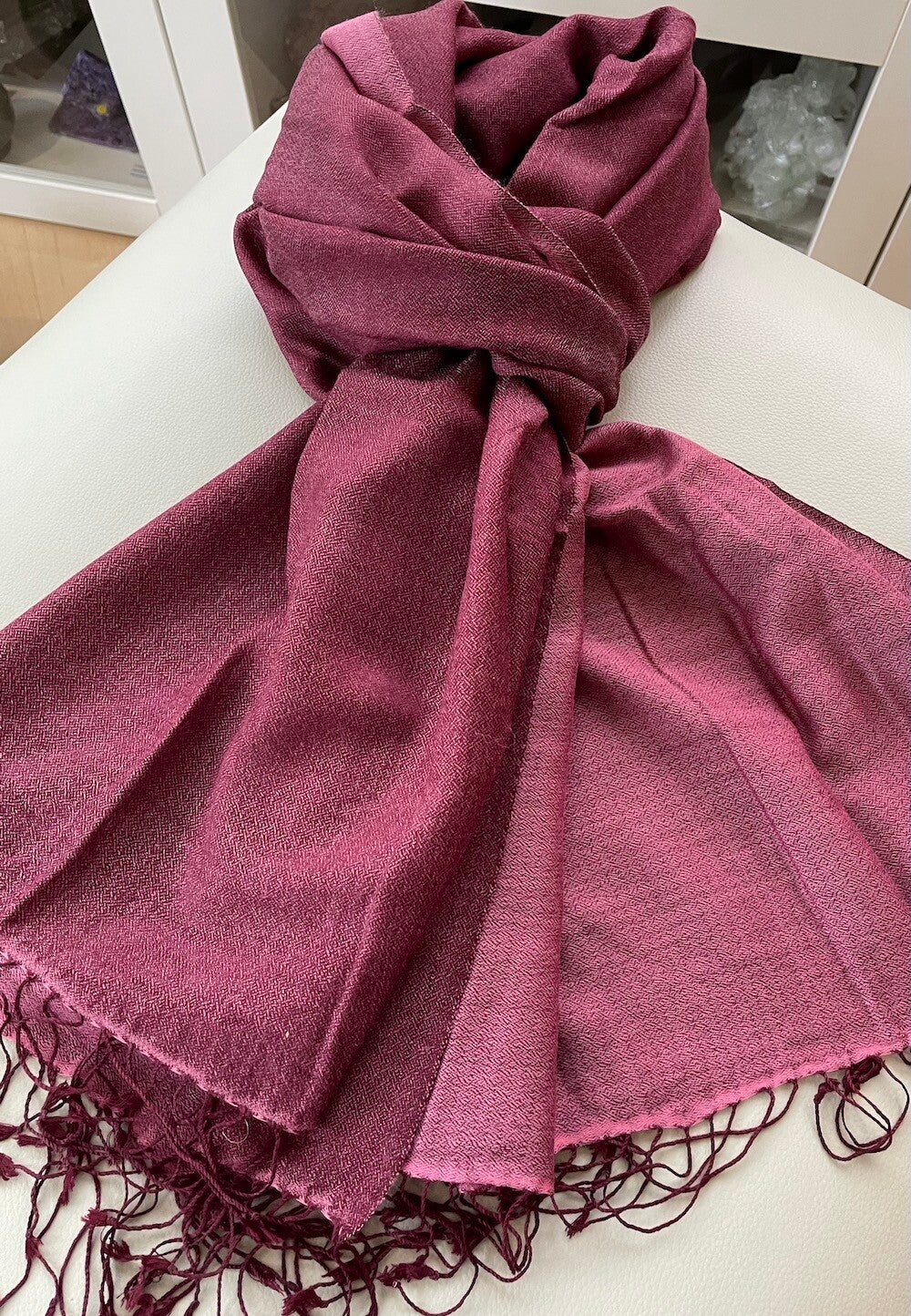 Sjaal van zachte wol in effen maroon-rode kleur, uit India