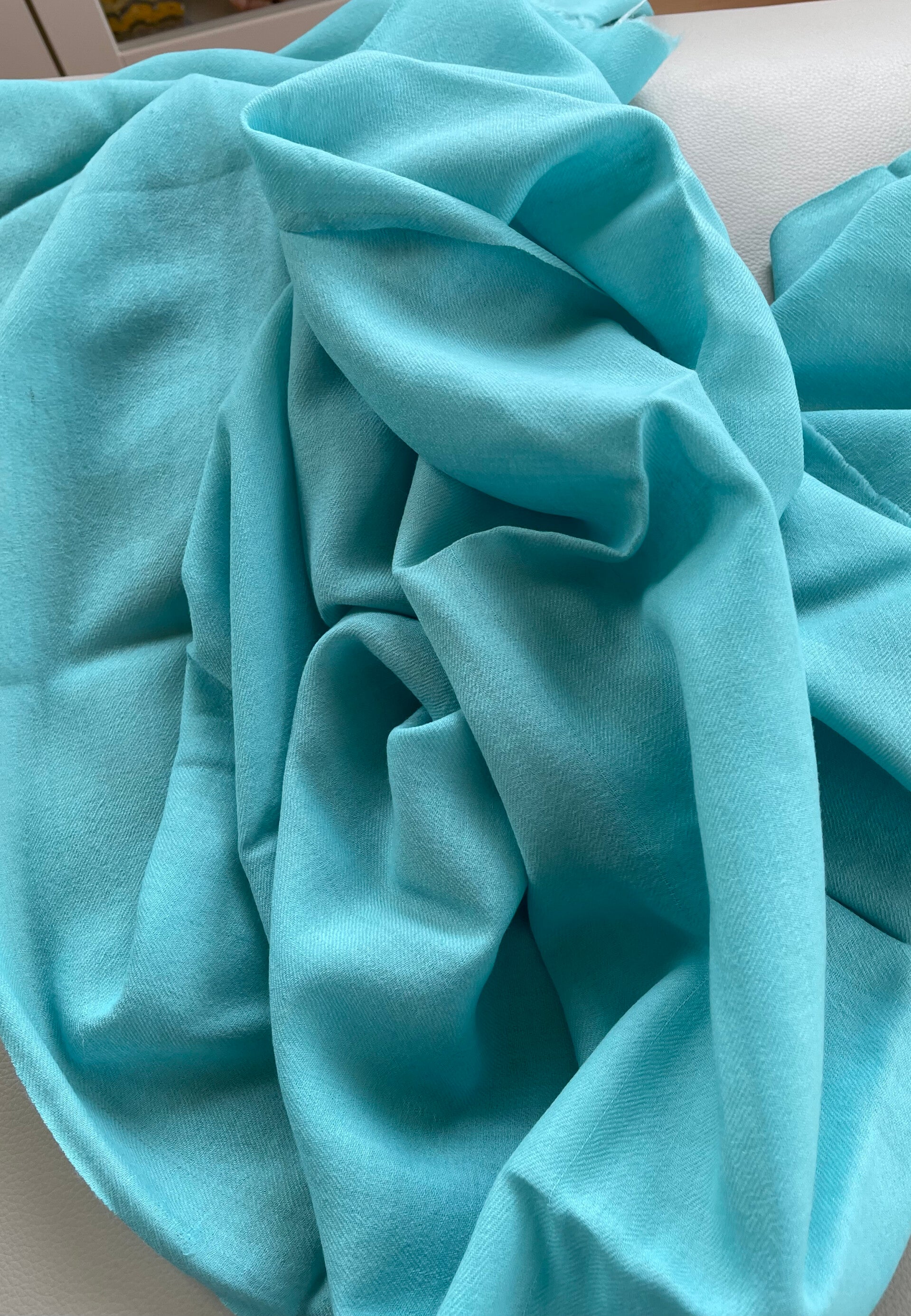 Sjaal van zachte wol in effen aqua-blauw, uit India