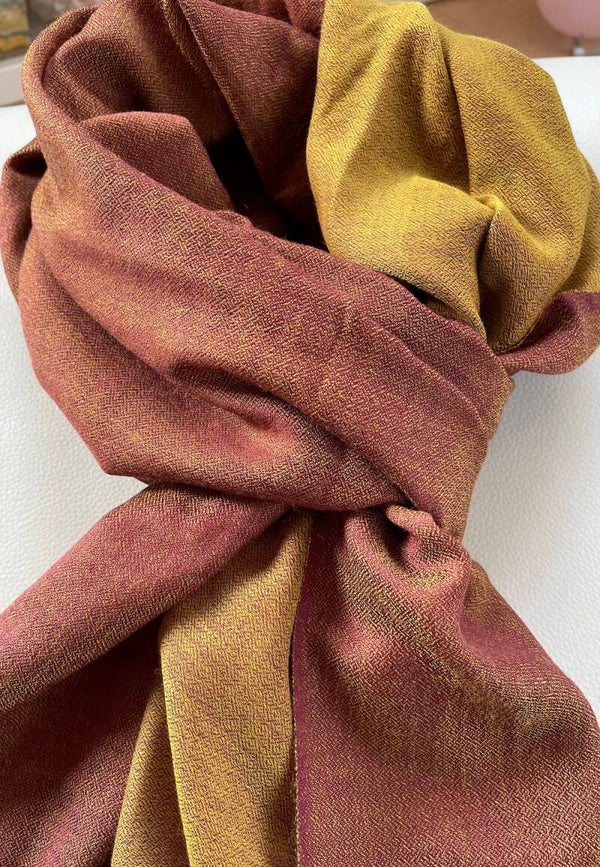 Zijde met wol gemengd, effen sjaal in mosterdgeel en bruin uit Kashmir, India