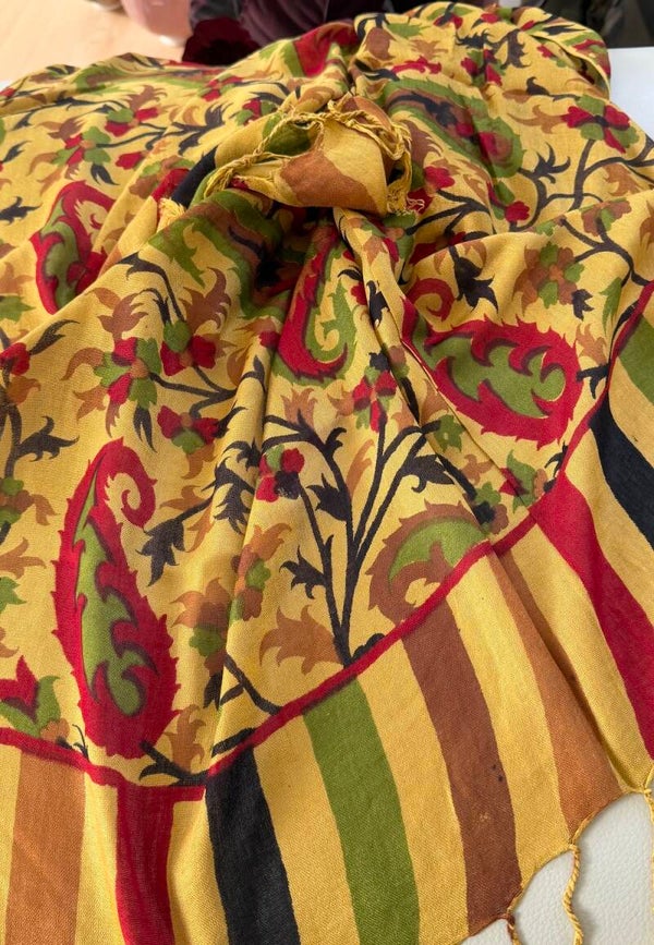 Mosterdgeel zachte katoenen sjaal met bloemenprint uit India, 100% katoen