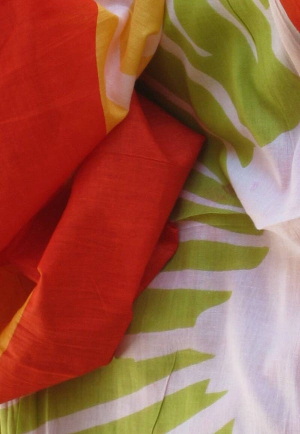 Zachte katoenen sjaal, pareo of lunghi in vrolijke kleurenprint, uit India